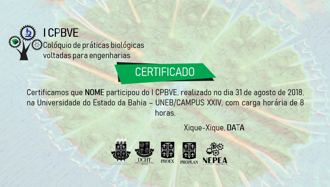 SIM você participante do I CPBVE já pode conferir seu e-mail e procurar pelo certificado do nosso evento!